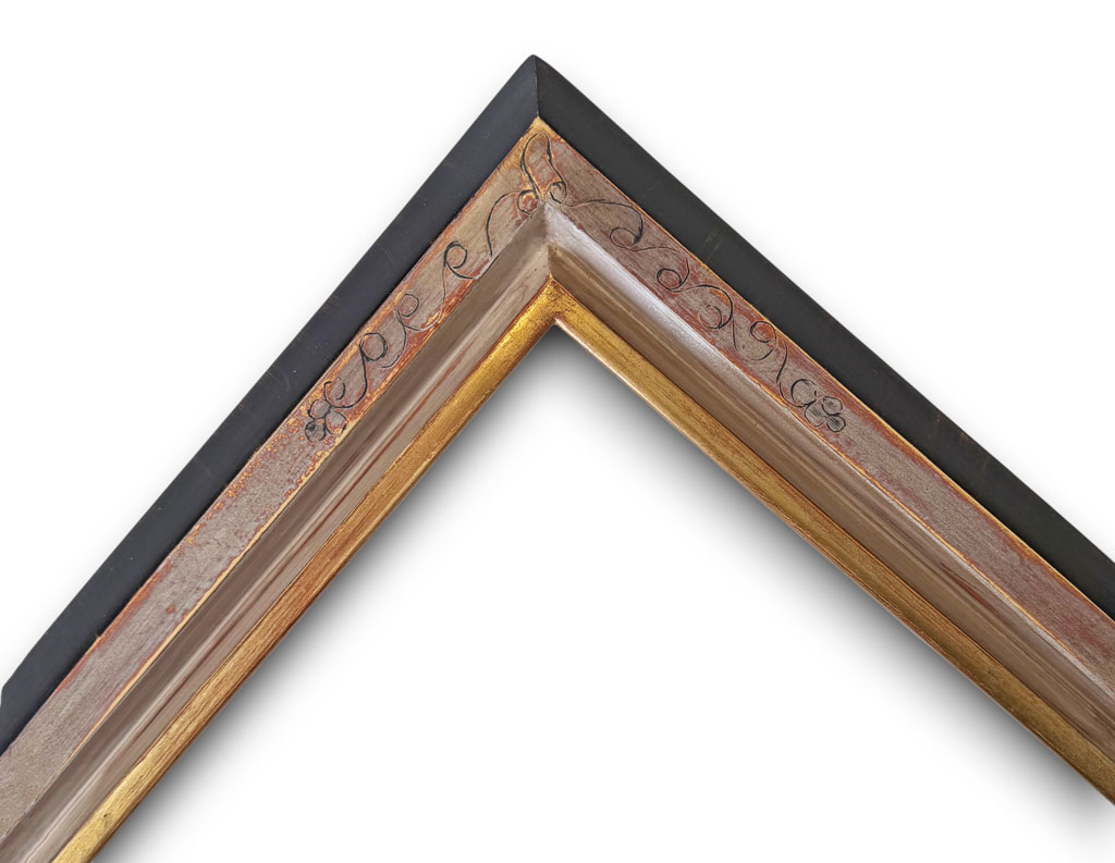 Filet or plat vieux blanc gravé extérieur noir griffé