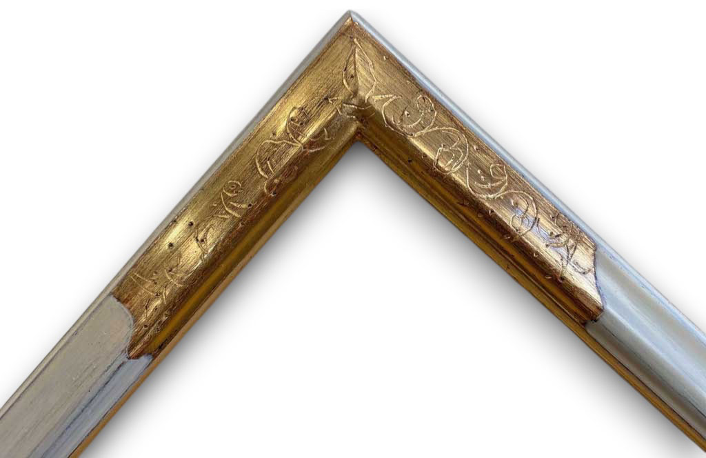 Or blanc usé sur assiette noire dos noir